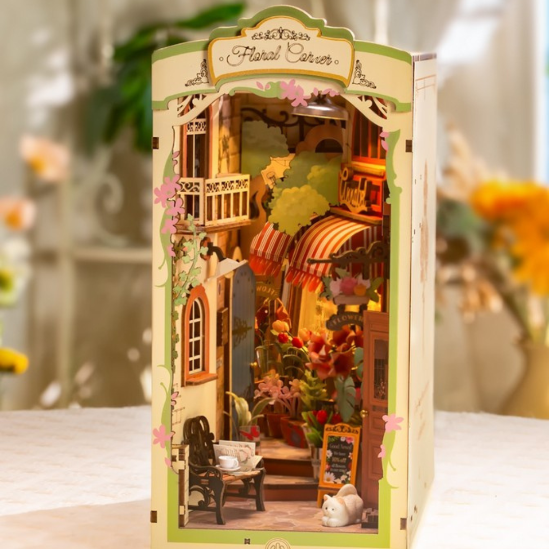 Transform your bookshelf into a charming garden with the Floral Corner Book Nook. This miniature flower shop brings vibrant blossoms and intricate details, adding a touch of nature and whimsy to your library.
